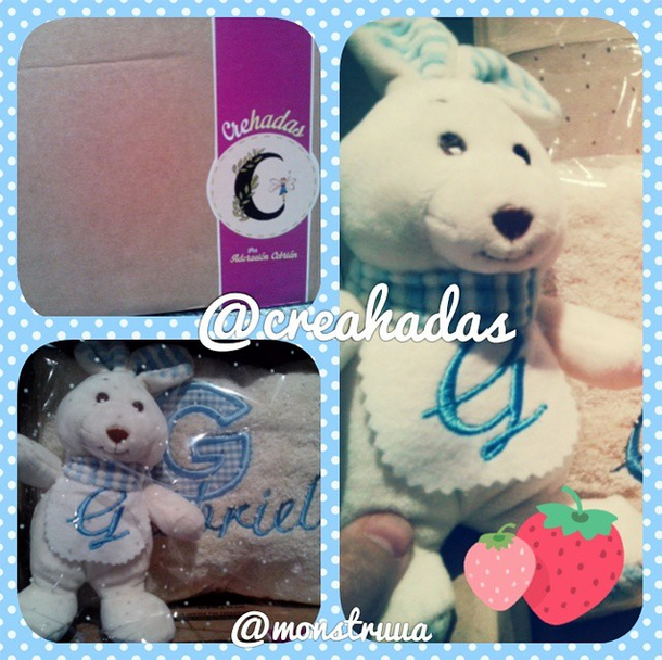 Y a Futuro Monstruito le regaló una toalla que da gusto coger, con un precioso bordado con su nombre, además de un peluche muy, muy suave, con un babero donde aparecía la inicial del nombre: