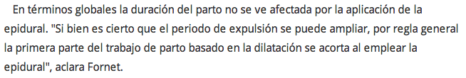 Y, oye, una que ya usó la epidural en su primer parto, va rauda y veloz a ver qué se cuenta, por ver de qué va la vaina cuando los argumentos no salen de asociaciones tipo El Parto es Nuestro (y que merecen todo mi respeto, sea dicho de paso, aunque a veces me parezcan un pelín radicales).